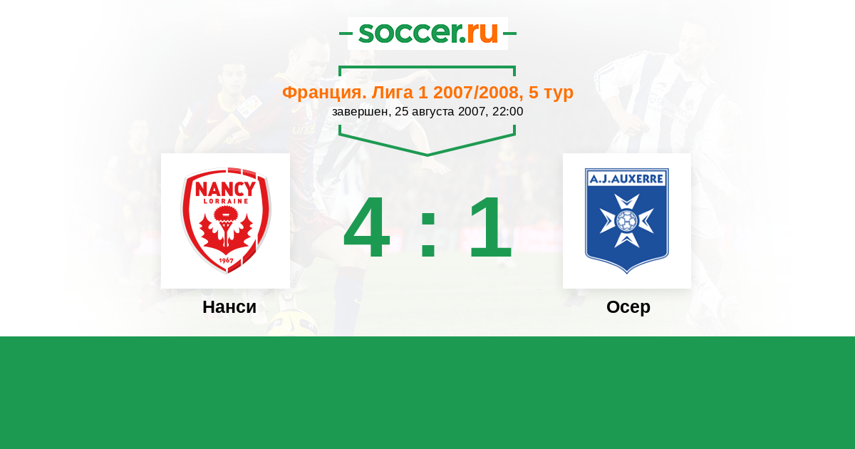 Франция. Лига 1 13.09.2008 Осер Логотип футбольный клуб Осер 1:1 Логотип футбольный клуб Нанси Нанси