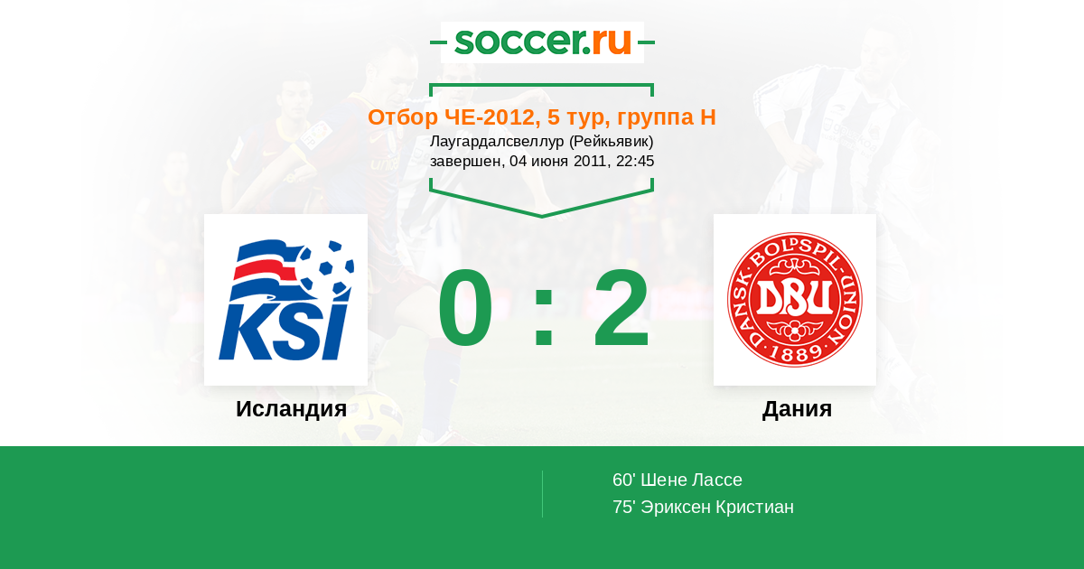 Протокол матча Исландия против Дания