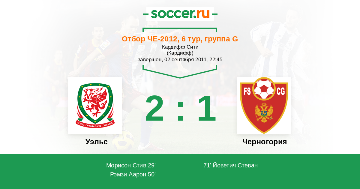Протокол матча Уэльс против Черногория