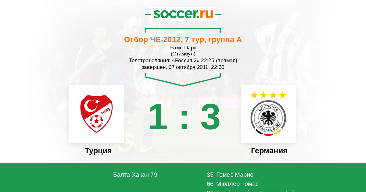 Протокол матча Турция против Германия