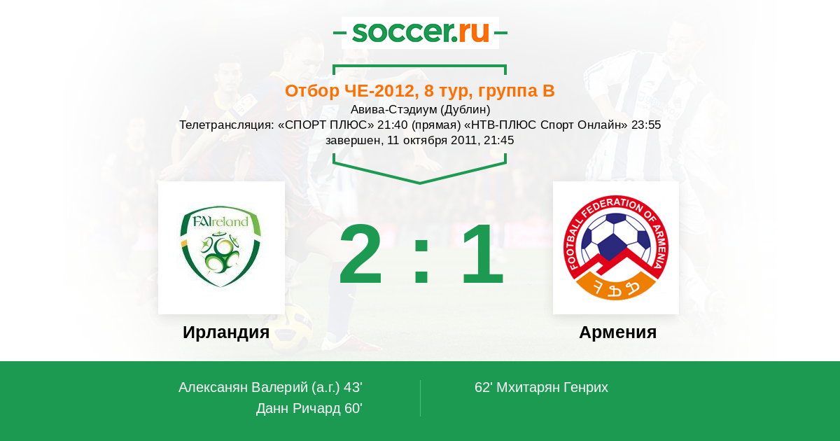 Протокол матча Ирландия против Армения