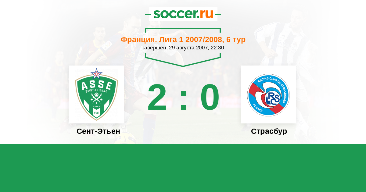 Франция. Лига 1 09.02.2008 Страсбур Логотип футбольный клуб Страсбур 3:0 Логотип футбольный клуб Сент-Этьен Сент-Этьен