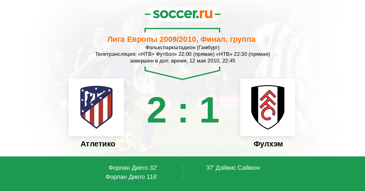 Гол116' (2:1) Форлан Диего (7) (Агуэро Серхио (10))