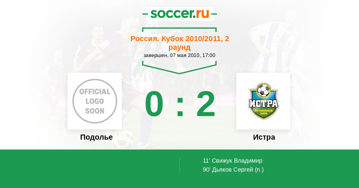 Протокол матча Подолье против Истра