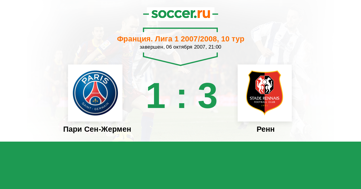 Франция. Лига 1 18.03.2007 Ренн Логотип футбольный клуб Ренн 1:0 Логотип футбольный клуб Пари Сен-Жермен (Париж) Пари Сен-Жермен