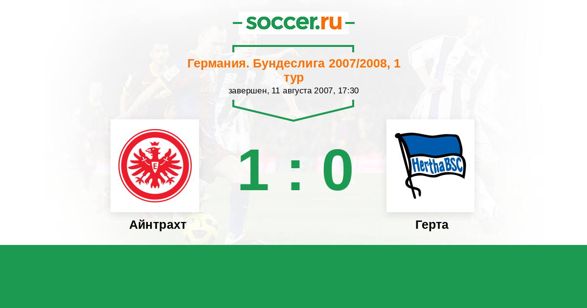 Германия. Бундеслига 17.08.2008 Айнтрахт Логотип футбольный клуб Айнтрахт (Франкфурт) 0:2 Логотип футбольный клуб Герта (Берлин) Герта