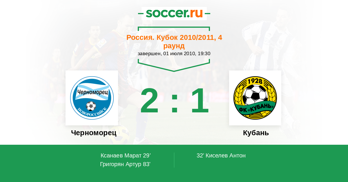 Протокол матча Черноморец против Кубань
