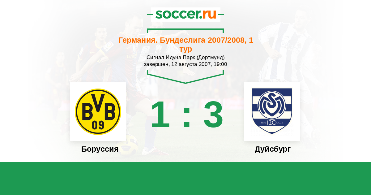 Протокол матча Боруссия против Дуйсбург