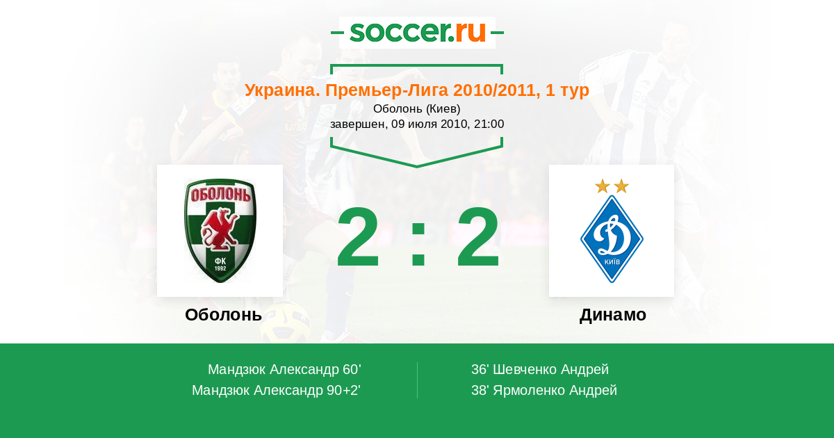 Протокол матча Оболонь против Динамо