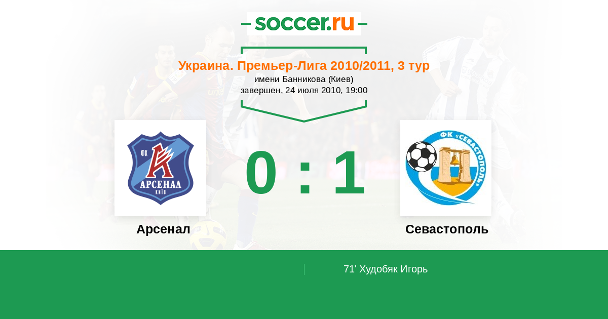 Протокол матча Арсенал против Севастополь