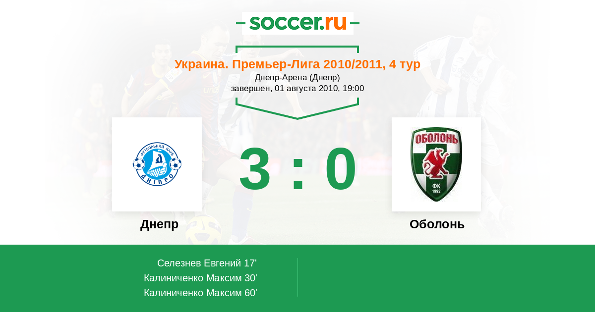 Протокол матча Днепр против Оболонь