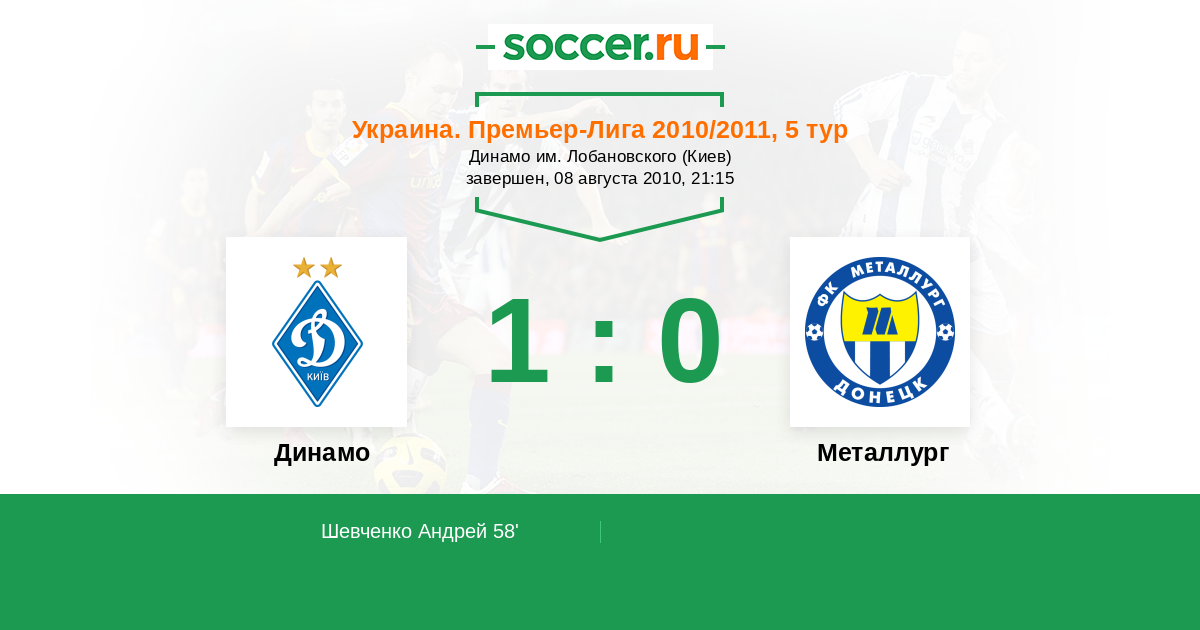 Протокол матча Динамо против Металлург
