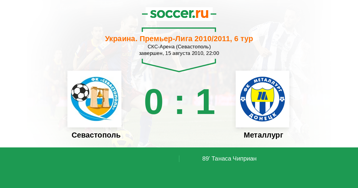 Протокол матча Севастополь против Металлург