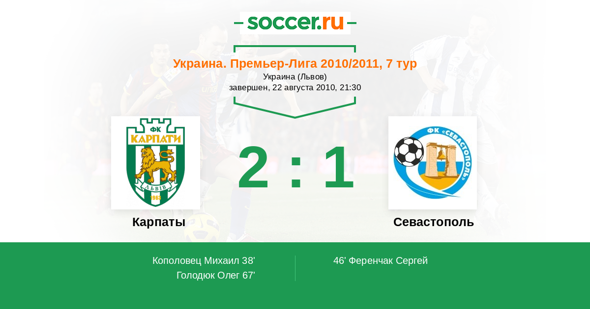Протокол матча Карпаты против Севастополь