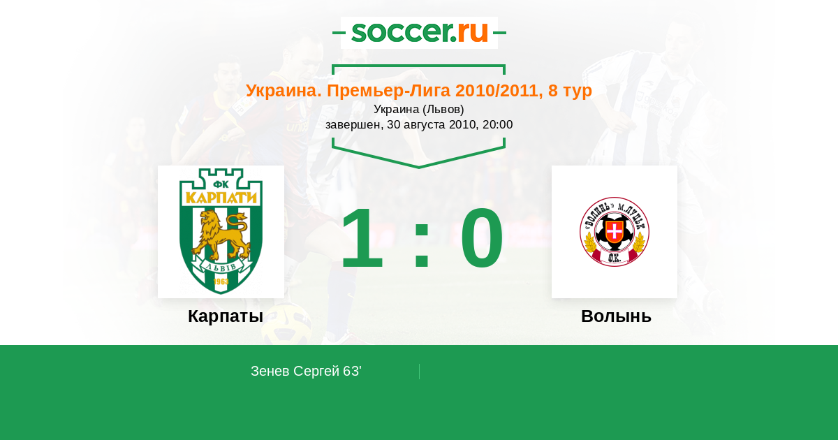 Протокол матча Карпаты против Волынь