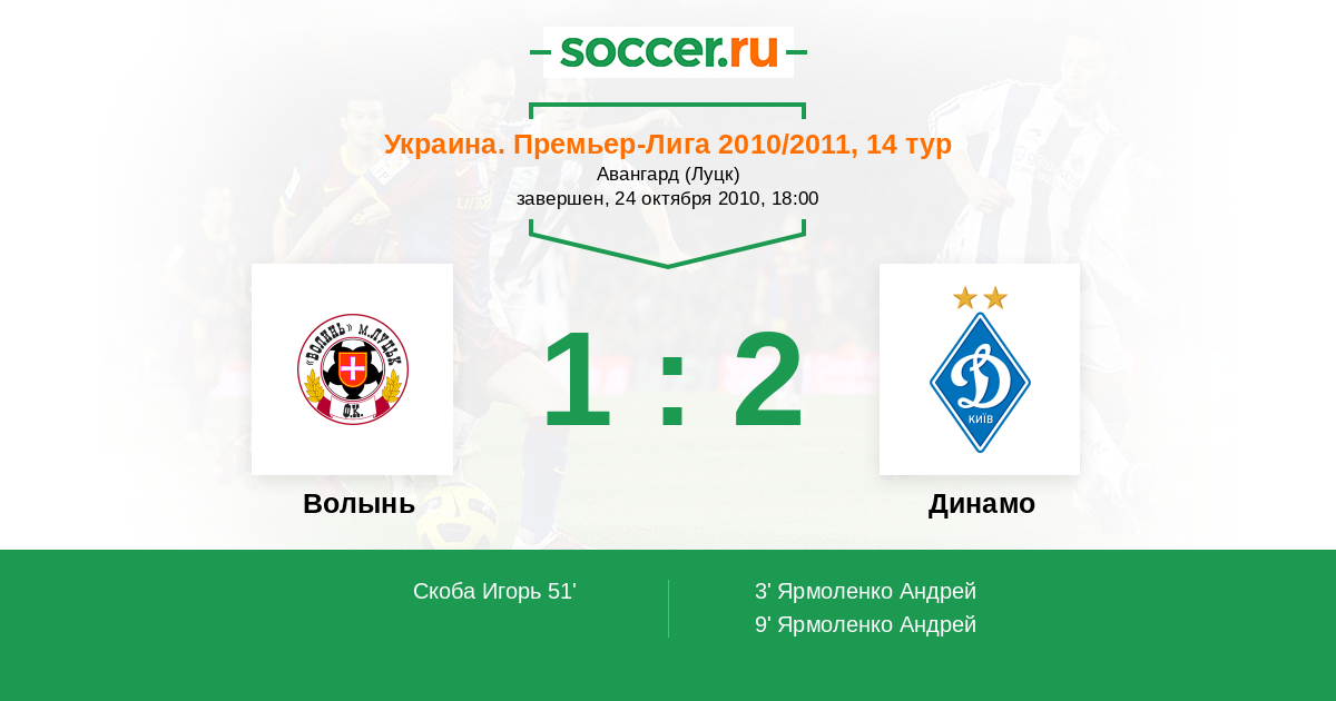 Протокол матча Волынь против Динамо