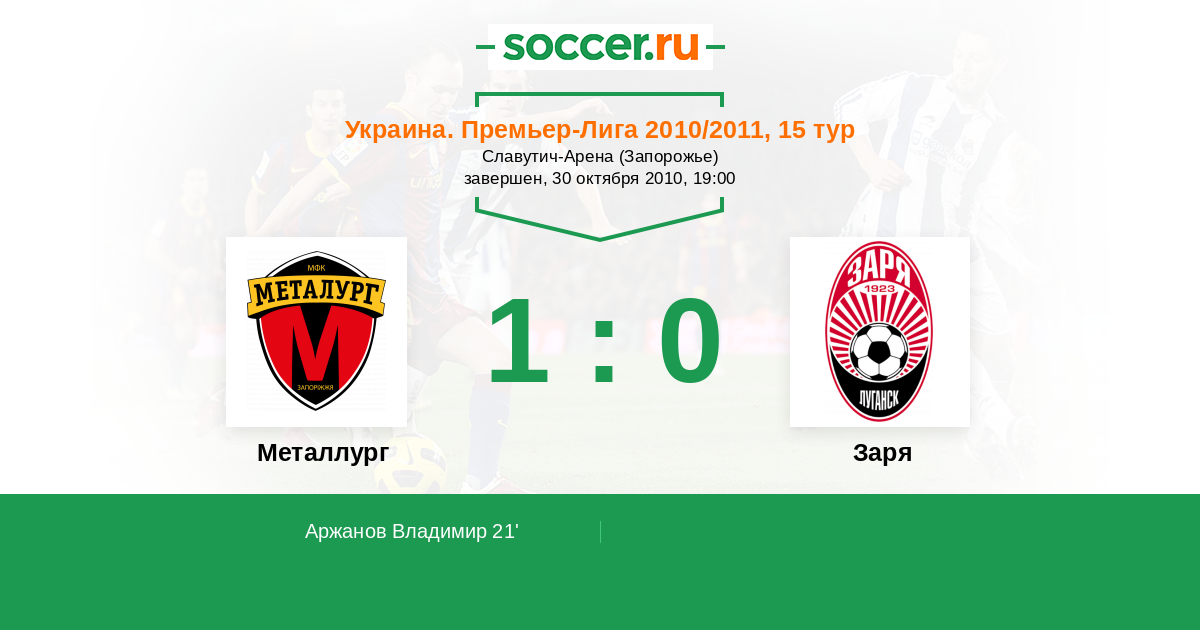 Протокол матча Металлург против Заря