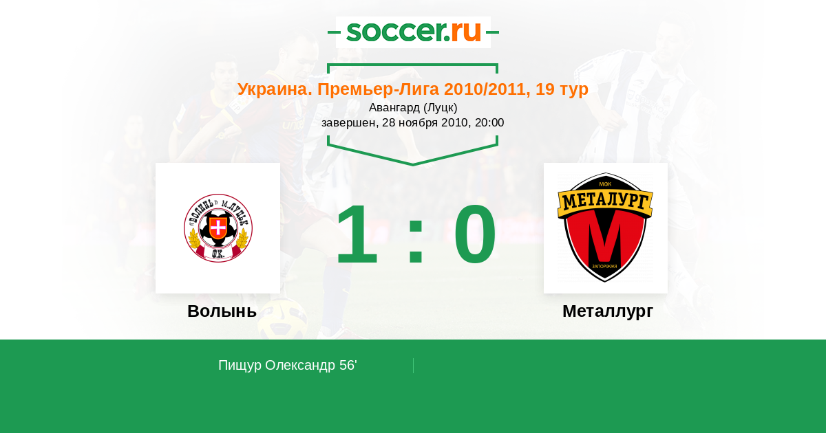 Протокол матча Волынь против Металлург