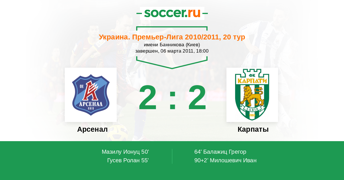 Протокол матча Арсенал против Карпаты