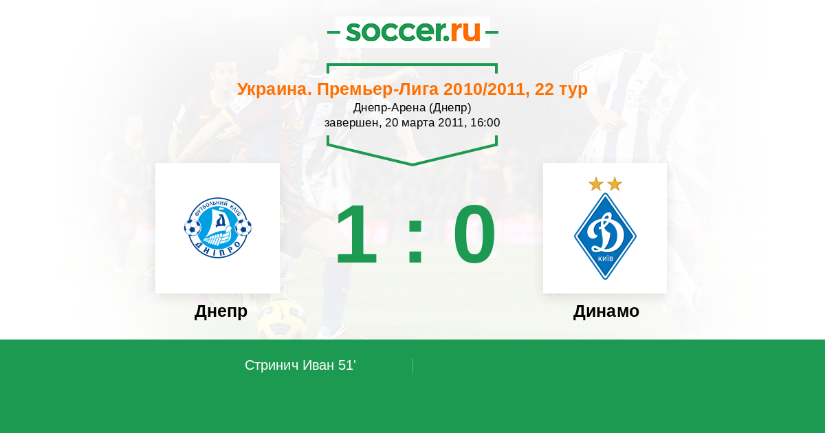 Протокол матча Днепр против Динамо