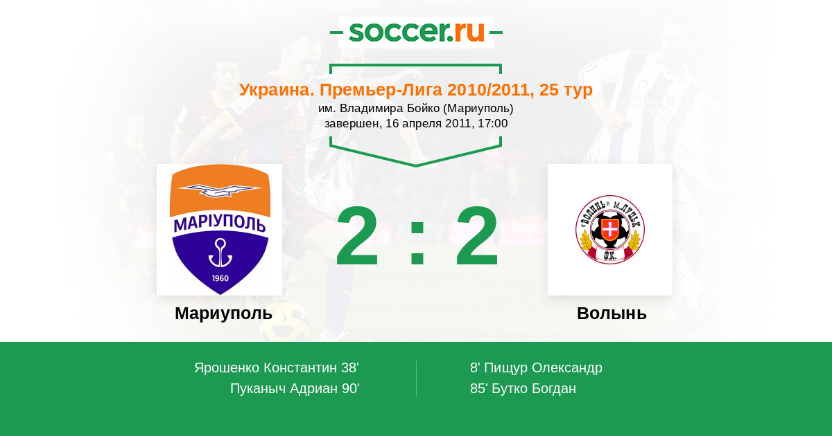 Протокол матча Ильичевец против Волынь