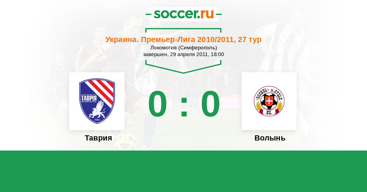 Протокол матча Таврия против Волынь