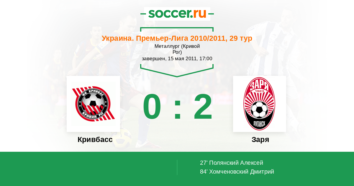 Протокол матча Кривбасс против Заря