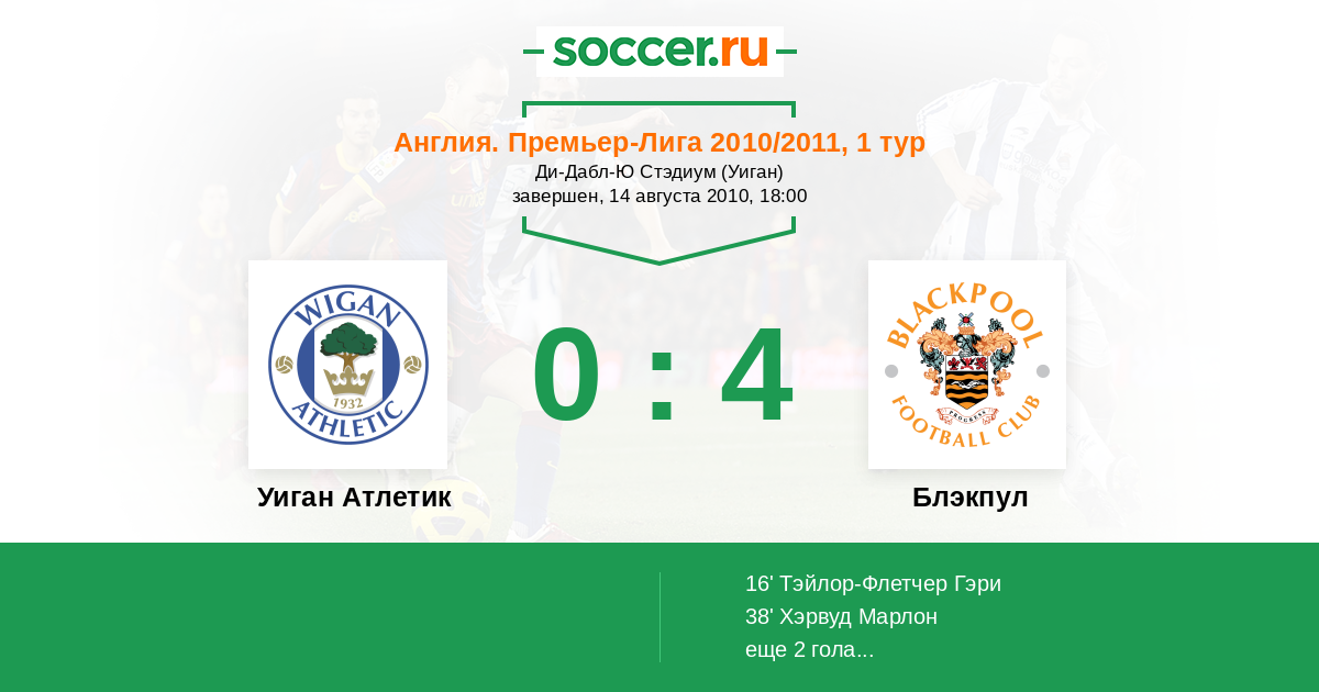 Протокол матча Уиган Атлетик против Блэкпул