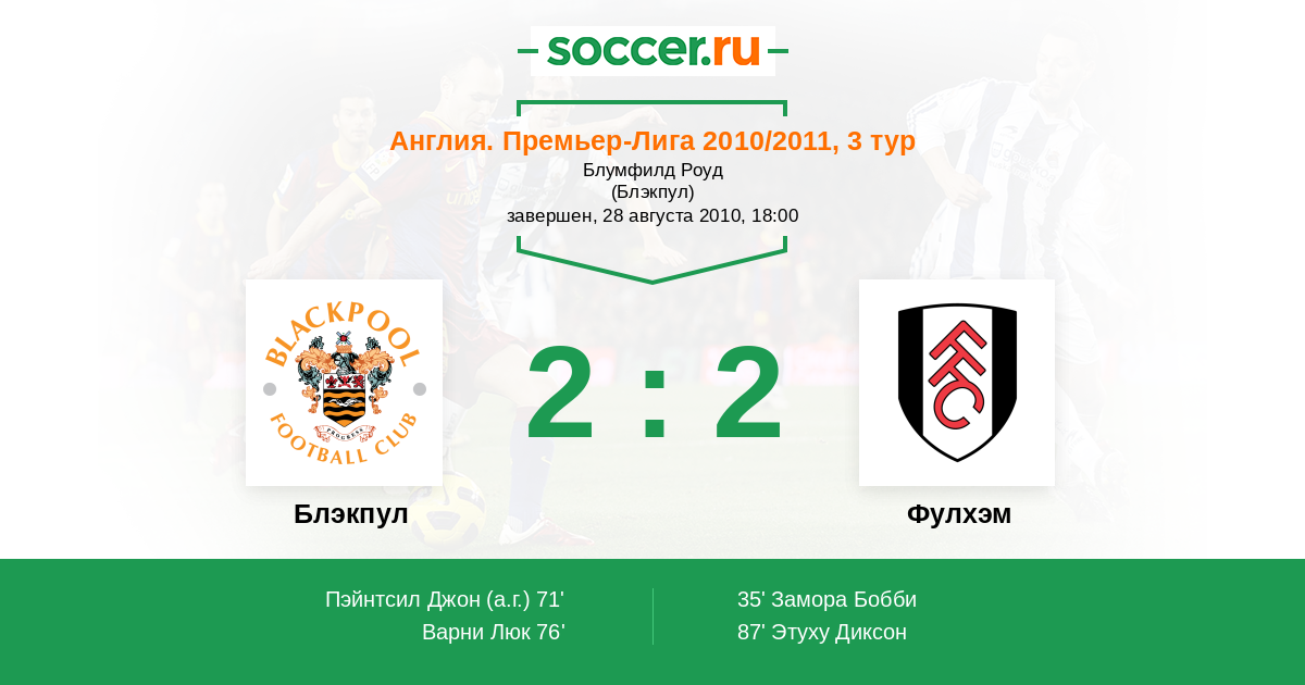 Протокол матча Блэкпул против Фулхэм