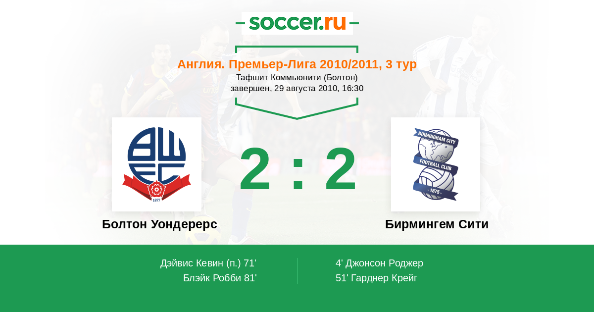 Протокол матча Болтон Уондерерс против Бирмингем Сити
