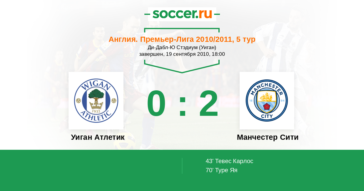 Протокол матча Уиган Атлетик против Манчестер Сити