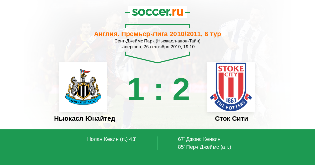 Протокол матча Ньюкасл Юнайтед против Сток Сити