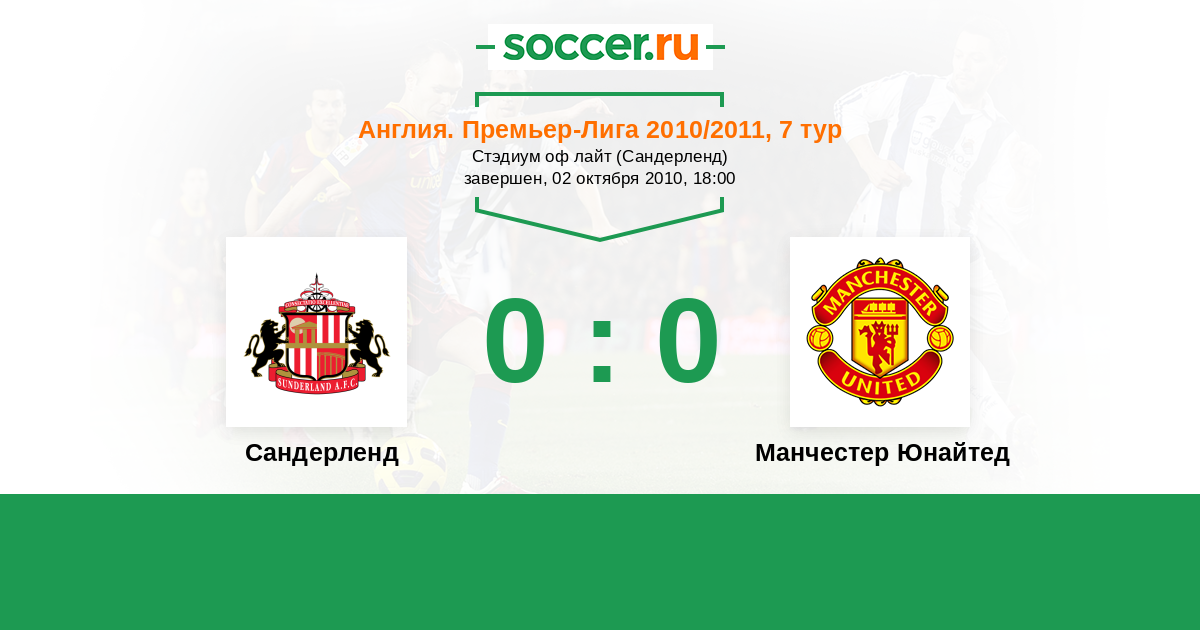 Протокол матча Сандерленд против Манчестер Юнайтед