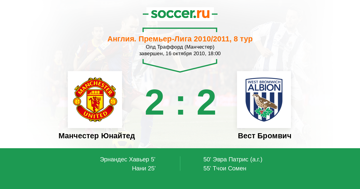 Протокол матча Манчестер Юнайтед против Вест Бромвич