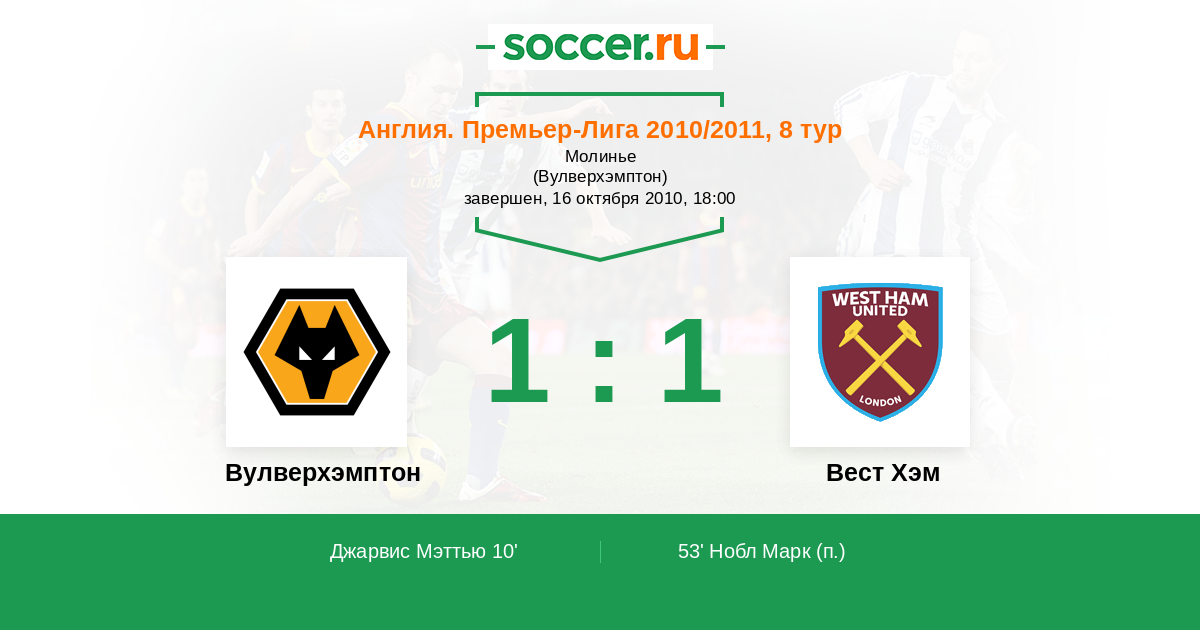 Протокол матча Вулверхэмптон против Вест Хэм