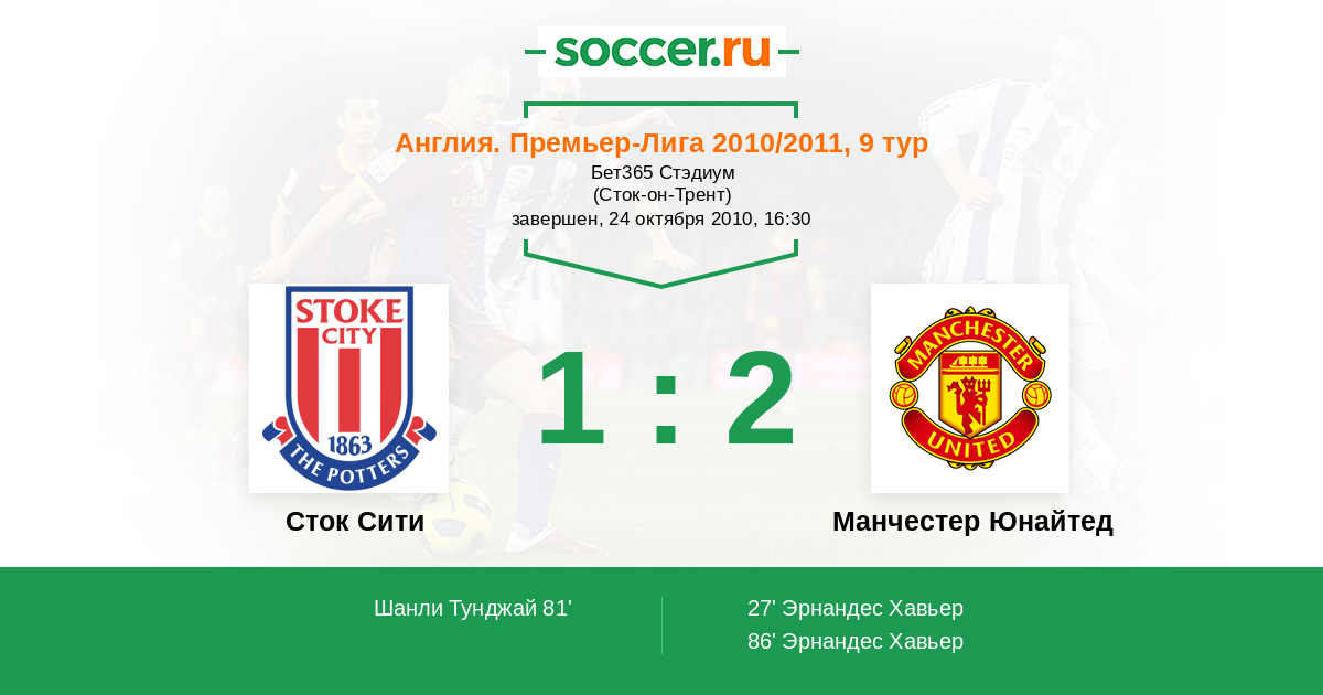 Протокол матча Сток Сити против Манчестер Юнайтед