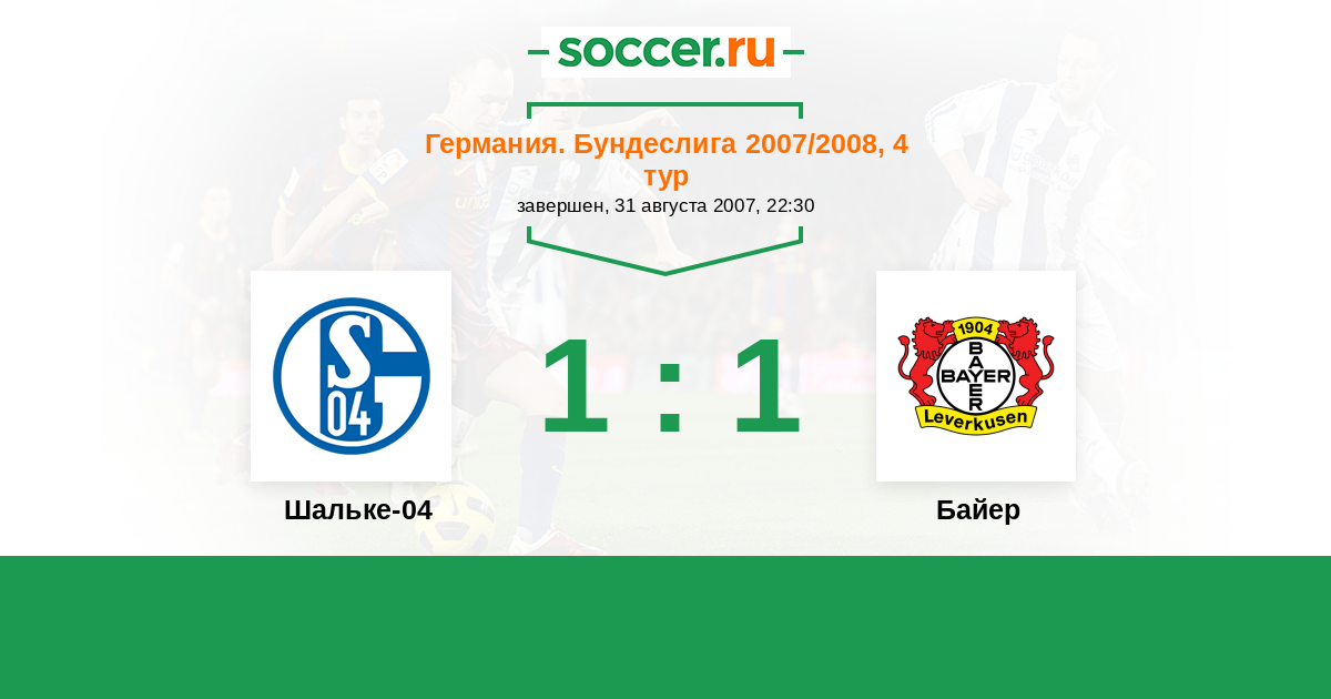 Германия. Бундеслига 25.02.2007 Шальке-04 Логотип футбольный клуб Шальке-04 (Гельзенкирхен) 0:1 Логотип футбольный клуб Байер (Леверкузен) Байер
