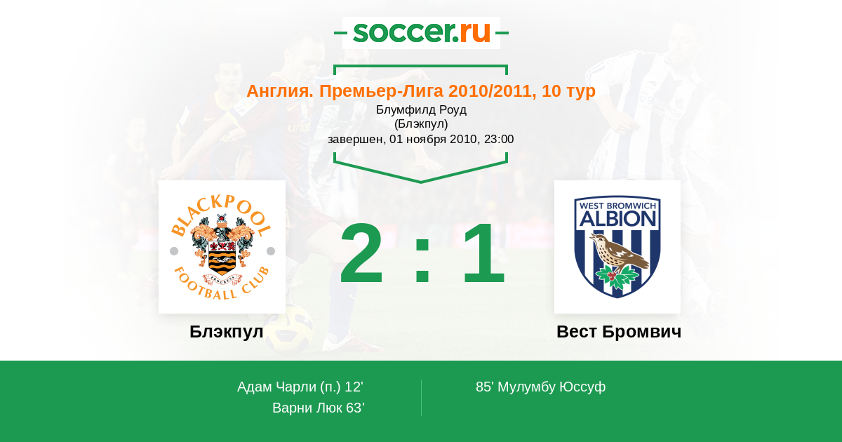 Протокол матча Блэкпул против Вест Бромвич