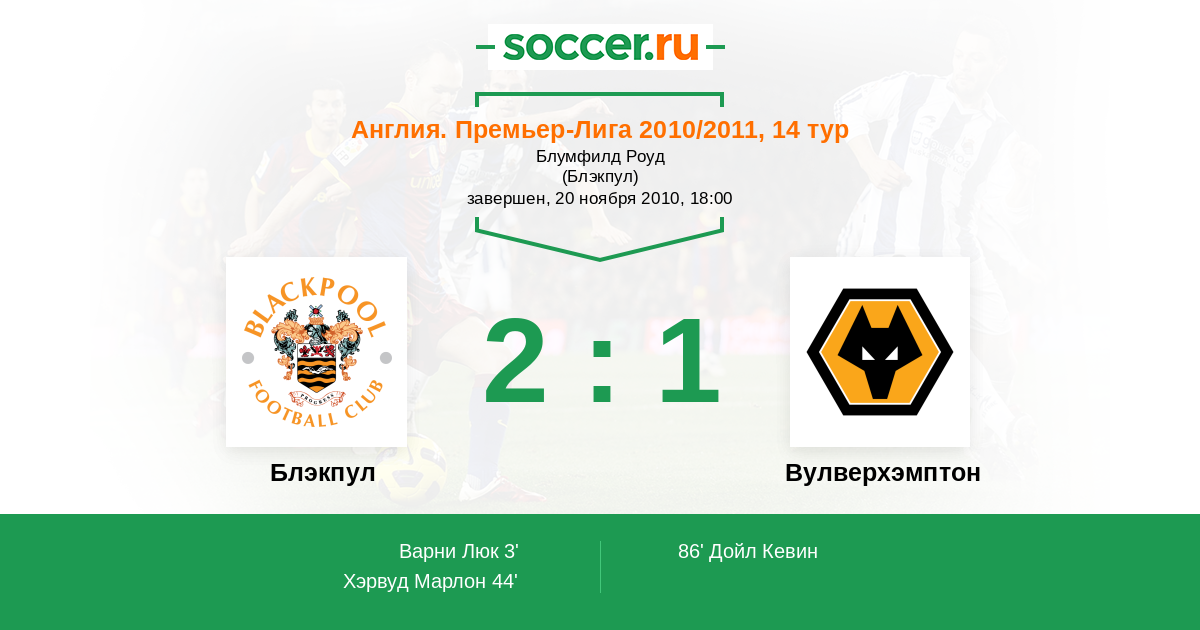 Протокол матча Блэкпул против Вулверхэмптон
