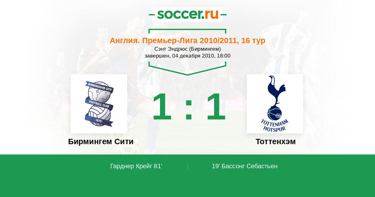 Протокол матча Бирмингем Сити против Тоттенхэм