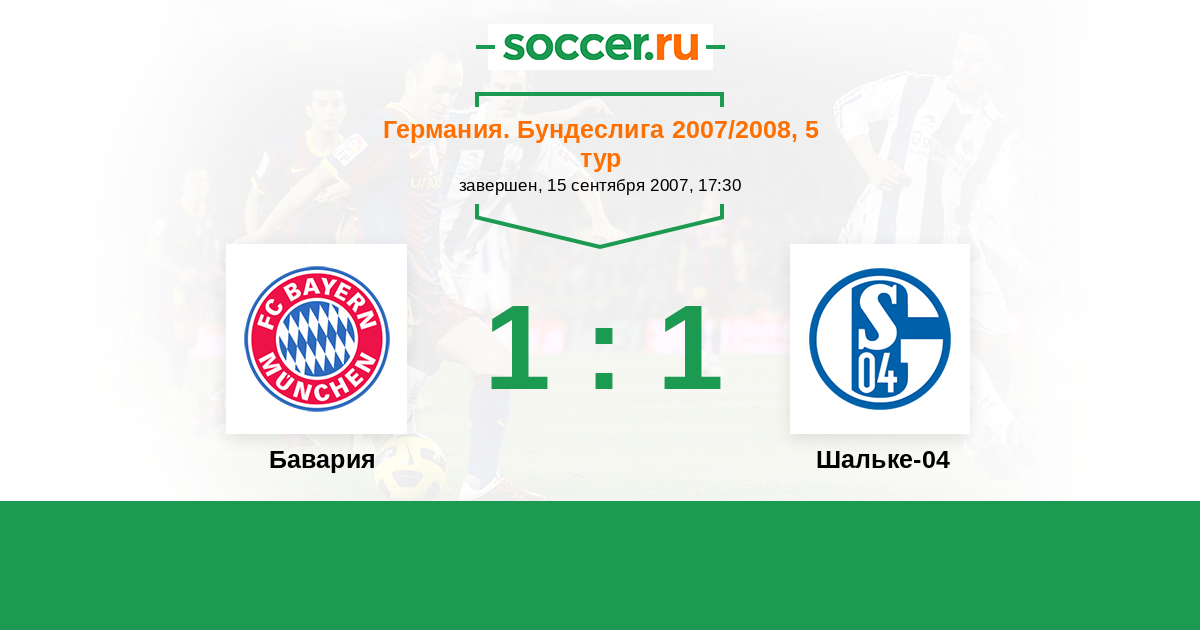Германия. Бундеслига 31.03.2007 Бавария Логотип футбольный клуб Бавария (Мюнхен) 2:0 Логотип футбольный клуб Шальке-04 (Гельзенкирхен) Шальке-04