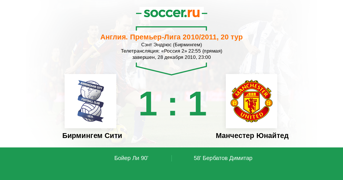 Протокол матча Бирмингем Сити против Манчестер Юнайтед
