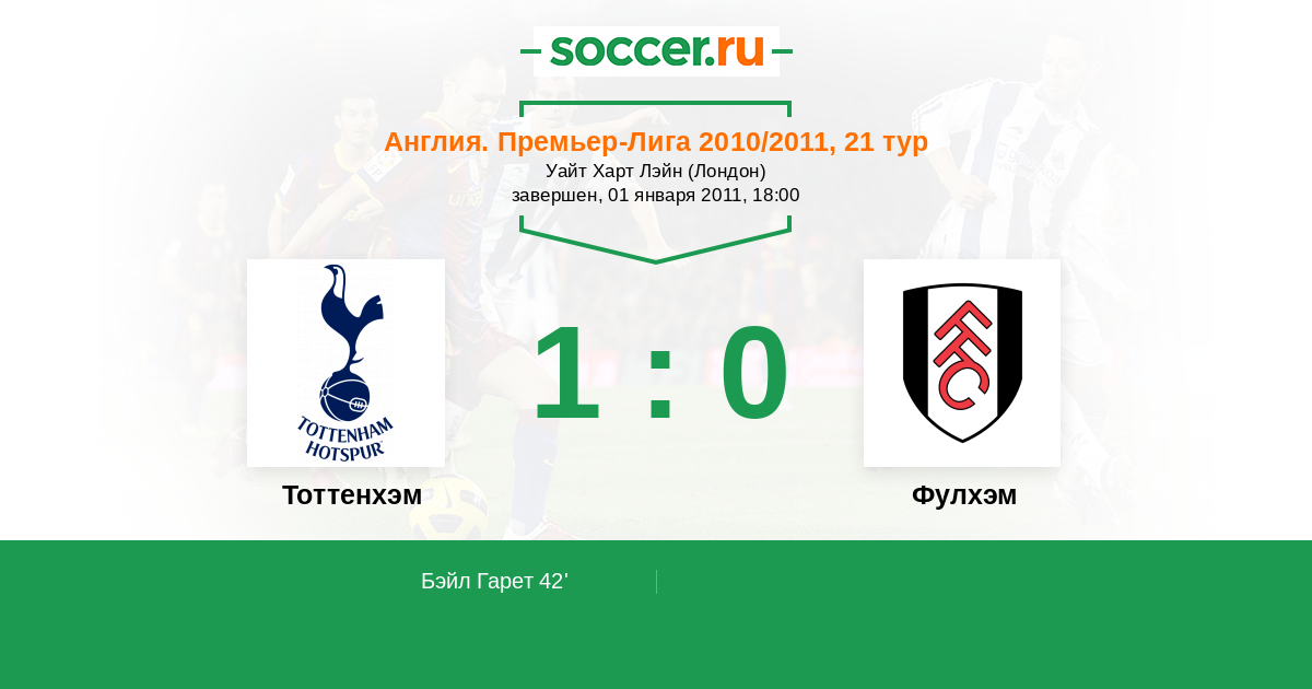 42' (1:0) Бэйл Гарет (3) (Ван дер Варт Рафаэль (11))