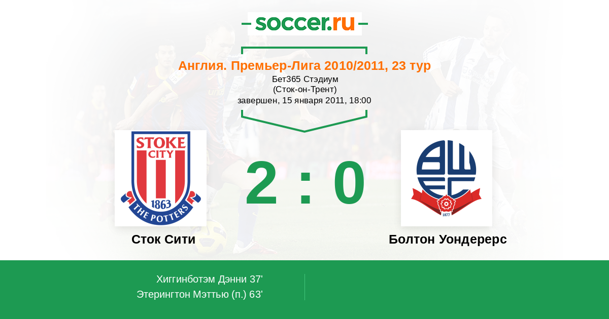 Протокол матча Сток Сити против Болтон Уондерерс