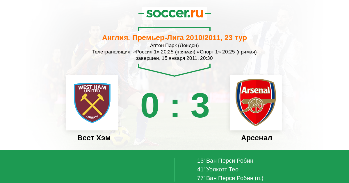 Протокол матча Вест Хэм против Арсенал