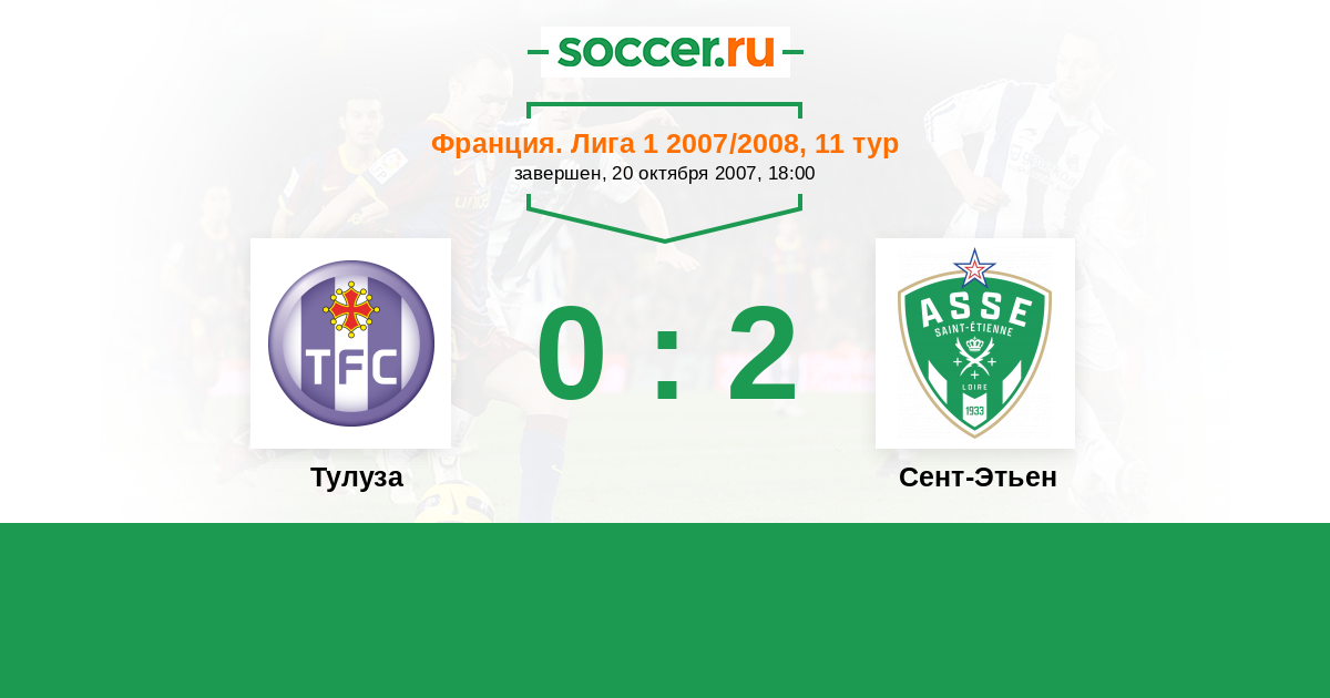 Франция. Лига 1 01.04.2007 Тулуза Логотип футбольный клуб Тулуза 1:0 Логотип футбольный клуб Сент-Этьен Сент-Этьен