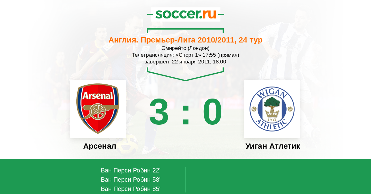 Протокол матча Арсенал против Уиган Атлетик