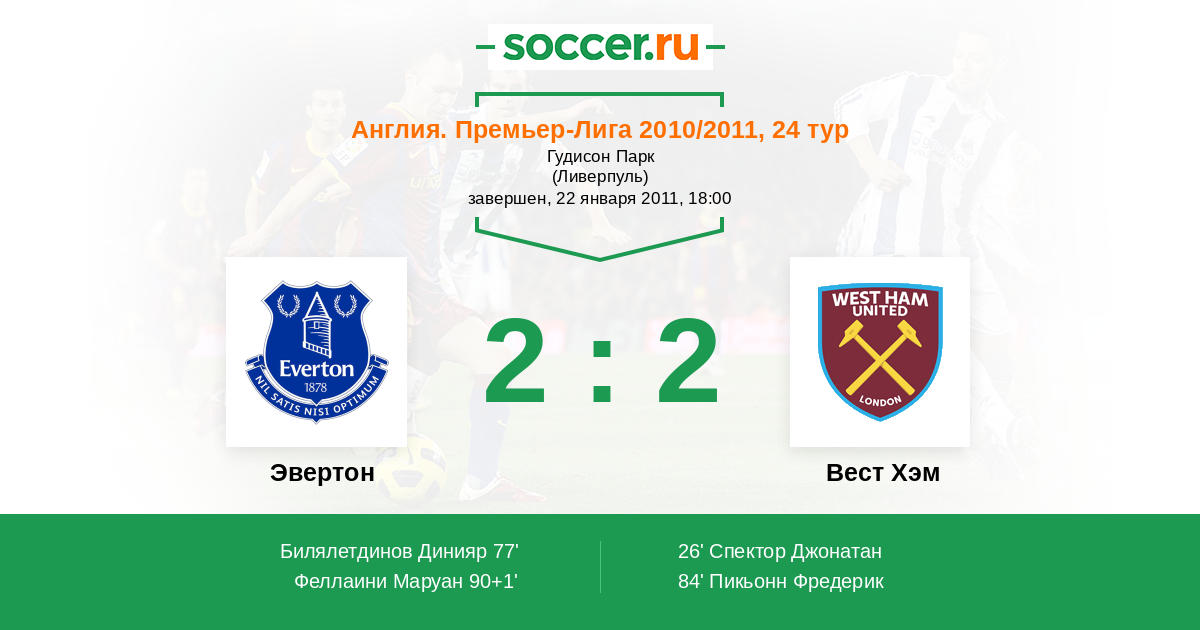 Протокол матча Эвертон против Вест Хэм