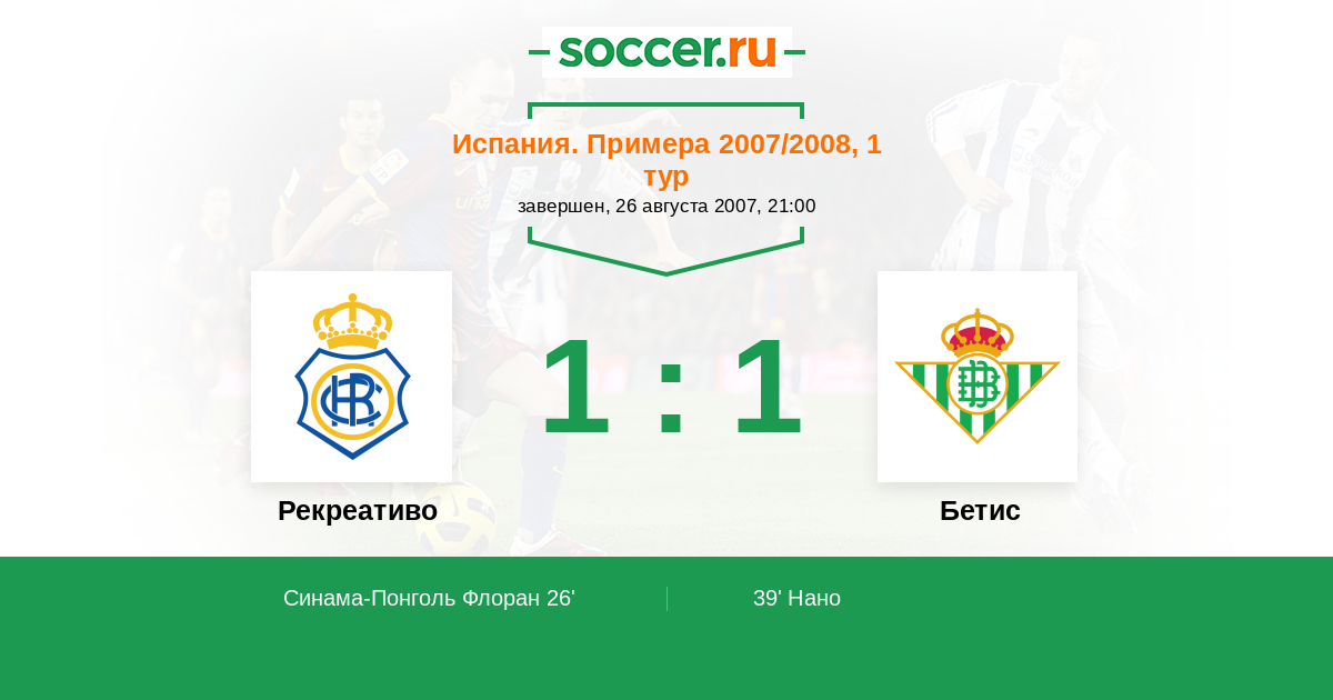 Протокол матча Рекреативо против Бетис