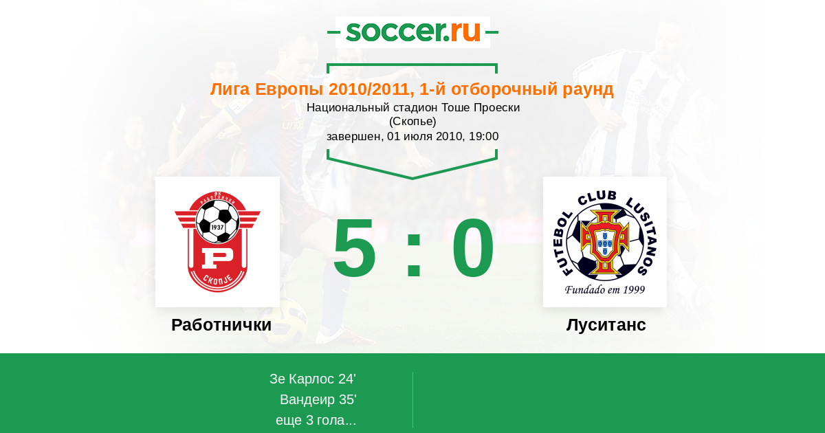 Протокол матча Работнички против Луситанс